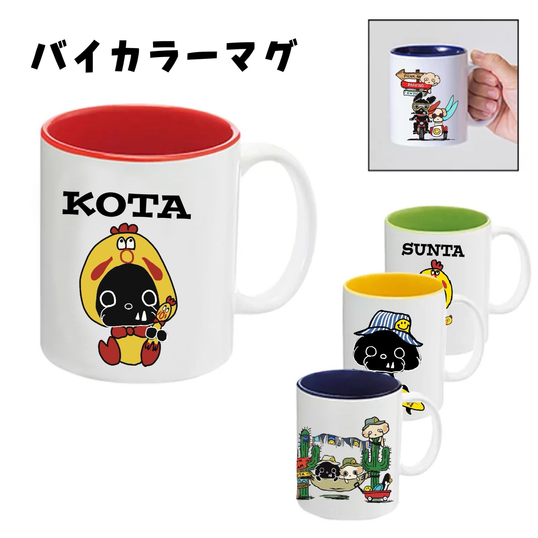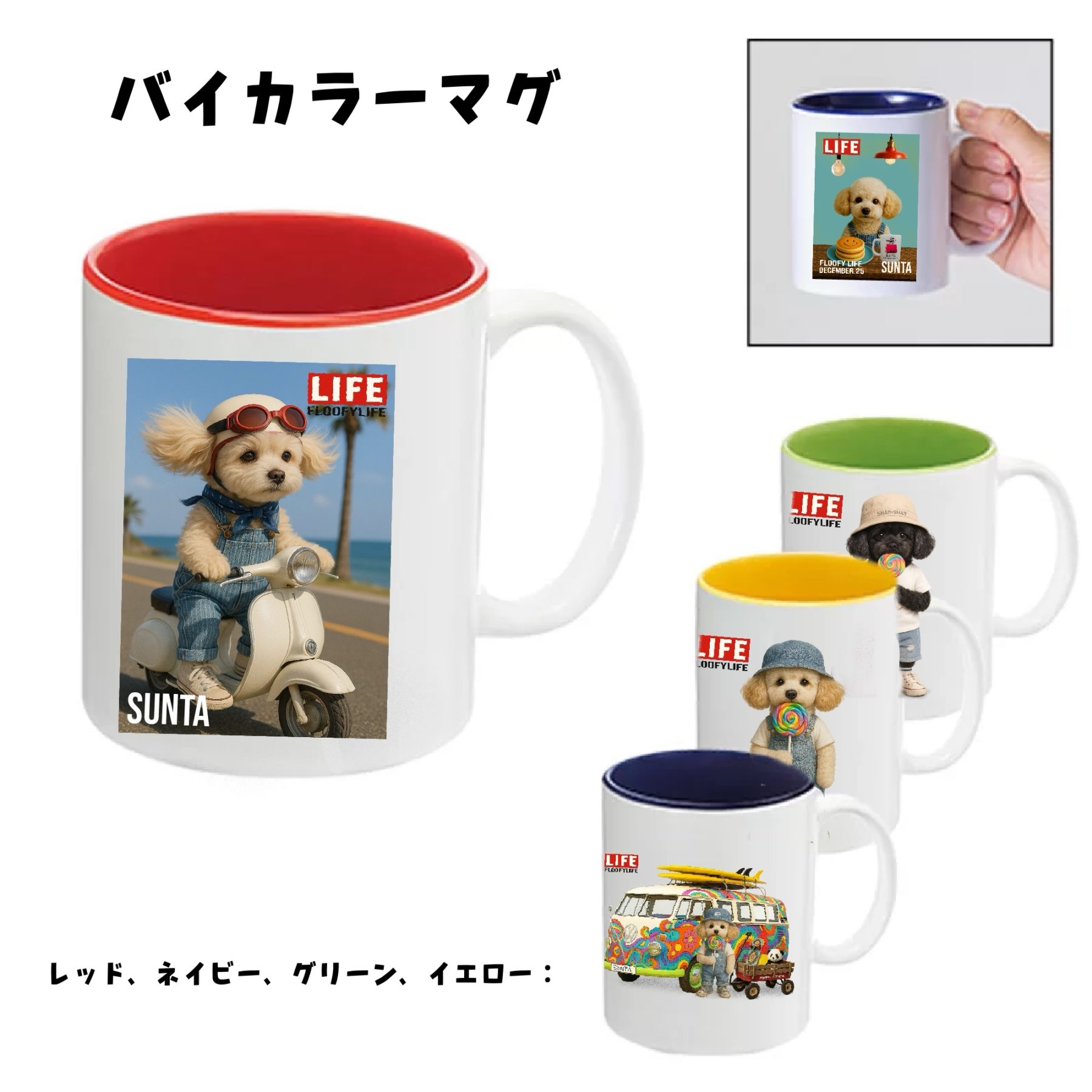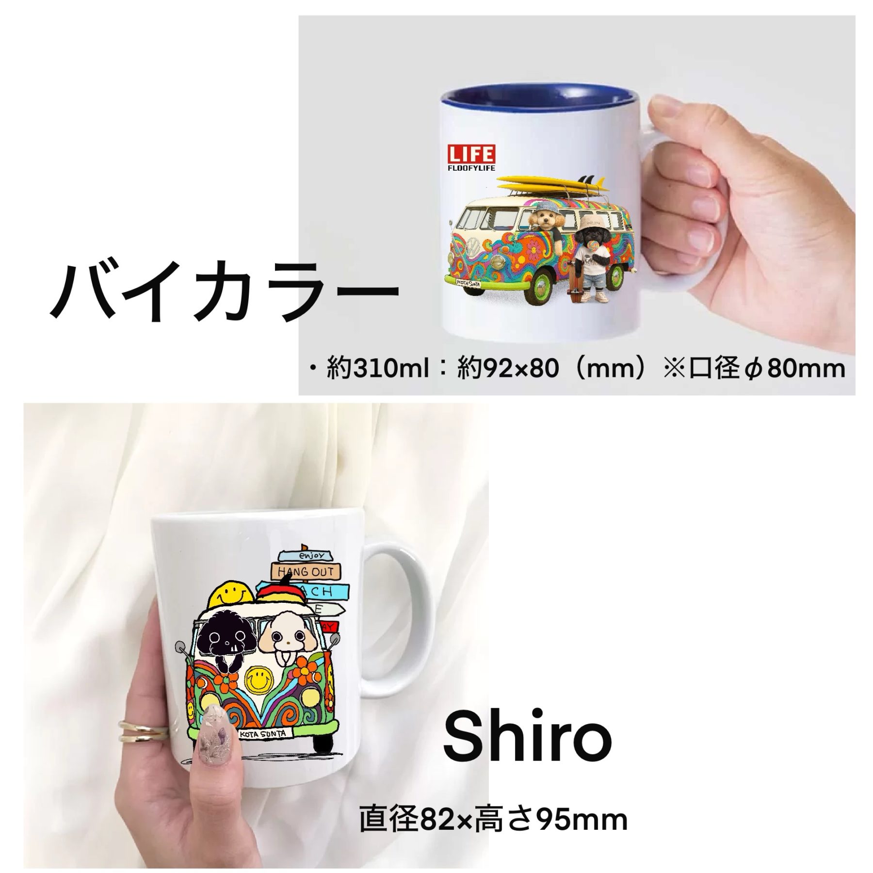 世界にひとつだけの「うちのこキャライラスト」や、人気の FLOOFYLIFE デザインでつくる、オリジナル陶器マグ。