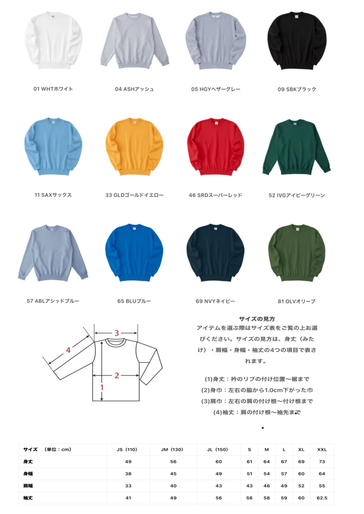 2.サイズ/色